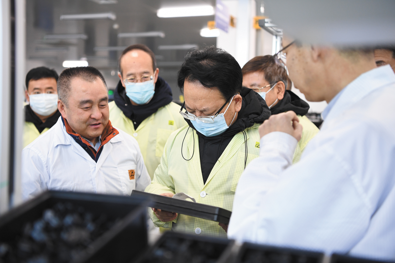 12月9日(ri),吉(ji)林省委(wei)(wei)書記景(jing)俊海到中(zhong)國兵器工業(ye)集團(tuan)東北工業(ye)集團(tuan)有限公司,就深入貫(guan)徹(che)黨的十九屆(jie)五(wu)中(zhong)全會(hui)精神和習近平(ping)總書記視察吉(ji)林重要(yao)講話重要(yao)指示精神,全面落實(shi)省委(wei)(wei)十一屆(jie)八次全會(hui)精神,推(tui)動企(qi)業(ye)創(chuang)新發(fa)展(zhan)等情(qing)況進行調研(yan)。吉(ji)林省委(wei)(wei)常委(wei)(wei)、副省長(chang)(chang)吳靖(jing)平(ping),吉(ji)林省委(wei)(wei)常委(wei)(wei)、省委(wei)(wei)秘書長(chang)(chang)胡家福,吉(ji)林省委(wei)(wei)常委(wei)(wei)、長(chang)(chang)春(chun)市(shi)委(wei)(wei)書記王凱一同(tong)調研(yan)。  圖為景俊海等在東北工業集團生產(chan)現場(chang)調研