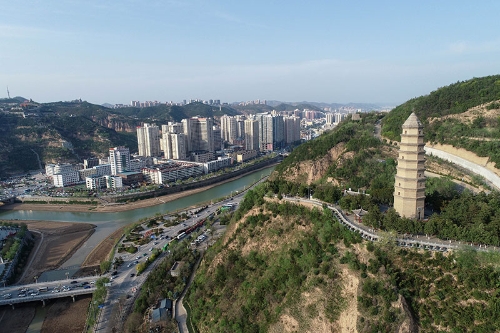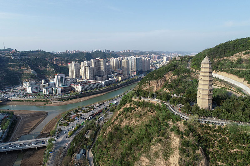 這是4月22日拍攝(she)的延安市寶(bao)塔山(無(wu)人機照片)。新華社記者(zhe) 張博文 攝(she)