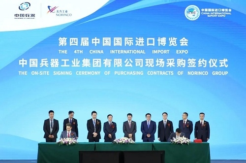 |   11月6日(ri),中(zhong)國(guo)(guo)兵器工業(ye)集(ji)團(tuan)有限公司在(zai)上海國(guo)(guo)家會展中(zhong)心隆重舉辦第四屆中(zhong)國(guo)(guo)國(guo)(guo)際進(jin)口博覽會現場(chang)采購簽(qian)約(yue)儀(yi)式(shi),兵器工業(ye)集(ji)團(tuan)副總經理鄒文超,國(guo)(guo)資委、商務部、國(guo)(guo)家會展中(zhong)心等(deng)有關部門領導(dao),以及來自沙特(te)、伊拉克、瑞士、日(ri)本、新加(jia)坡、俄羅斯、法國(guo)(guo)、美(mei)國(guo)(guo)等(deng)國(guo)(guo)知名企業(ye)簽(qian)約(yue)代表出席簽(qian)約(yue)儀(yi)式(shi)。此次(ci)簽(qian)約(yue)合同數量19個,金(jin)額達265億(yi)元(yuan)。