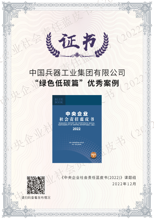 | 兵器工業集團綠色低碳案例入選《中央企業社會責任藍皮書(2022)》 | ||