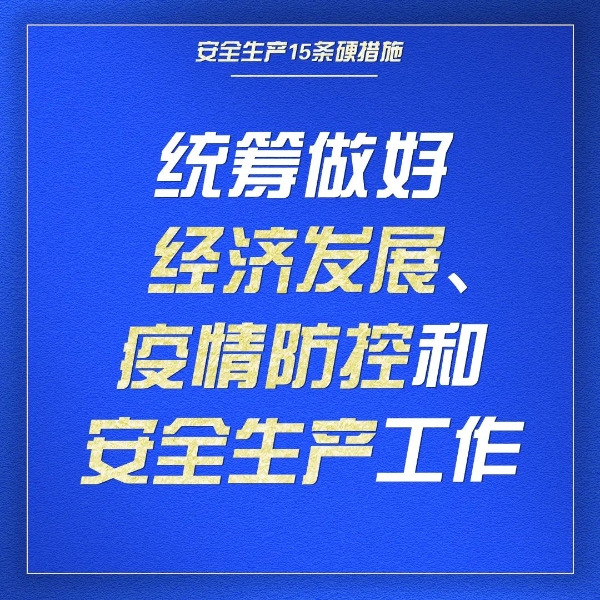 為(wei)認(ren)真貫徹落實習(xi)近平總書記關于安(an)全生產(chan)重(zhong)要指示(shi)精神和黨中央(yang)、國務院決(jue)策部署,近日,國務院安(an)委會梳理相關法律法規(gui)已(yi)有規(gui)定、以往管用舉措和近年(nian)來針(zhen)對新情況采(cai)取的有效措施,制定了進一步強化(hua)安(an)全生產(chan)責任(ren)落實、堅決(jue)防范(fan)遏(e)制重(zhong)特大(da)事故的十五條硬措施,部署發動(dong)各(ge)方(fang)面力量全力抓(zhua)好安(an)全防范(fan)工作,為(wei)黨的二十大(da)勝利召開(kai)創造良好安(an)全環(huan)境。