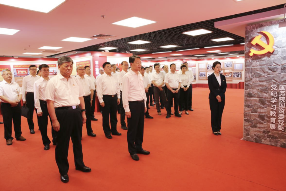 黨(dang)(dang)組同(tong)(tong)志(zhi)認真聆聽講解,集體參觀了(le)“政(zheng)(zheng)(zheng)治(zhi)(zhi)(zhi)鑄魂——習近(jin)(jin)平(ping)總書記(ji)重(zhong)(zhong)要(yao)論述”“紀(ji)(ji)(ji)法樹威——黨(dang)(dang)規黨(dang)(dang)紀(ji)(ji)(ji)相關(guan)要(yao)求”“傳(chuan)承增信——黨(dang)(dang)的(de)(de)優良(liang)傳(chuan)統”“嚴管(guan)促(cu)行(xing)——國(guo)務(wu)院國(guo)資(zi)(zi)委黨(dang)(dang)委紀(ji)(ji)(ji)律(lv)建設成效”“警示立戒——反面(mian)典型案(an)例”“實干建功(gong)——工(gong)作(zuo)(zuo)展(zhan)望”6個篇章(zhang),通過觀看圖文、視(shi)(shi)頻等形式多(duo)樣(yang)的(de)(de)展(zhan)品展(zhan)示,進一步學習領會(hui)習近(jin)(jin)平(ping)總書記(ji)關(guan)于國(guo)資(zi)(zi)央企(qi)的(de)(de)重(zhong)(zhong)要(yao)指示批(pi)示精神(shen)和黨(dang)(dang)的(de)(de)紀(ji)(ji)(ji)律(lv)建設的(de)(de)重(zhong)(zhong)要(yao)論述,學習把握(wo)《中國(guo)共(gong)產黨(dang)(dang)紀(ji)(ji)(ji)律(lv)處分條例》新增、修訂內(nei)容,全(quan)面(mian)了(le)解國(guo)務(wu)院國(guo)資(zi)(zi)委黨(dang)(dang)委強化(hua)政(zheng)(zheng)(zheng)治(zhi)(zhi)(zhi)引領、加強政(zheng)(zheng)(zheng)治(zhi)(zhi)(zhi)監督(du)、深化(hua)紀(ji)(ji)(ji)律(lv)建設、抓實巡視(shi)(shi)工(gong)作(zuo)(zuo)等方面(mian)的(de)(de)做法舉措,集中觀看近(jin)(jin)年來國(guo)資(zi)(zi)央企(qi)發生的(de)(de)具有代表性(xing)的(de)(de)違規違紀(ji)(ji)(ji)案(an)例,深刻領悟以習近(jin)(jin)平(ping)同(tong)(tong)志(zhi)為核心(xin)的(de)(de)黨(dang)(dang)中央堅持黨(dang)(dang)要(yao)管(guan)黨(dang)(dang)、全(quan)面(mian)從嚴治(zhi)(zhi)(zhi)黨(dang)(dang)取得(de)的(de)(de)歷史(shi)性(xing)成就,全(quan)面(mian)感受國(guo)務(wu)院國(guo)資(zi)(zi)委黨(dang)(dang)委全(quan)面(mian)從嚴治(zhi)(zhi)(zhi)黨(dang)(dang)取得(de)的(de)(de)重(zhong)(zhong)要(yao)成果。