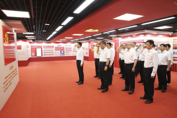 參觀后,程福(fu)波(bo)帶領大(da)家面向(xiang)黨(dang)旗重溫入黨(dang)誓詞。(兵宣)