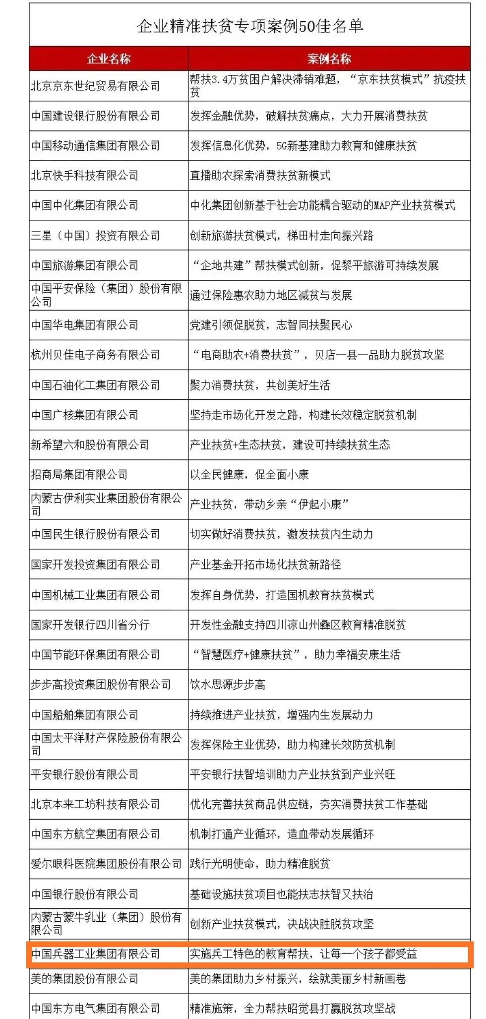 近日(ri),國務院(yuan)扶貧(pin)辦發(fa)布2020年企業(ye)精準扶貧(pin)案(an)例(li)獲(huo)獎名單,中(zhong)國兵器工(gong)(gong)業(ye)集團有限公司《實施兵工(gong)(gong)特色的教育幫扶,讓每(mei)一個(ge)孩子都受益》案(an)例(li)入選2020年企業(ye)精準扶貧(pin)專項案(an)例(li)“50佳”。