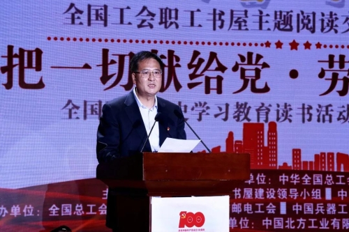 | 4月23日是(shi)第26個世界讀書(shu)(shu)日。在中華全(quan)國(guo)(guo)總工(gong)(gong)(gong)會(hui)(hui)(hui)指導(dao)下,全(quan)國(guo)(guo)工(gong)(gong)(gong)會(hui)(hui)(hui)職(zhi)(zhi)工(gong)(gong)(gong)書(shu)(shu)屋(wu)建(jian)設領導(dao)小組(zu)(zu)和中國(guo)(guo)兵器(qi)(qi)(qi)工(gong)(gong)(gong)業(ye)集團有(you)限(xian)公司(si)共同舉辦(ban)了(le)第五(wu)屆(jie)“閱讀經(jing)典好(hao)書(shu)(shu) 爭當時代工(gong)(gong)(gong)匠”全(quan)國(guo)(guo)工(gong)(gong)(gong)會(hui)(hui)(hui)職(zhi)(zhi)工(gong)(gong)(gong)書(shu)(shu)屋(wu)主題閱讀交流活(huo)(huo)動(dong)(dong)暨(ji)“把一(yi)切獻給黨·勞動(dong)(dong)創造(zao)幸福”全(quan)國(guo)(guo)職(zhi)(zhi)工(gong)(gong)(gong)黨史學習教育(yu)讀書(shu)(shu)活(huo)(huo)動(dong)(dong)啟動(dong)(dong)儀(yi)式。中華全(quan)國(guo)(guo)總工(gong)(gong)(gong)會(hui)(hui)(hui)黨組(zu)(zu)書(shu)(shu)記(ji)、副(fu)主席(xi)、書(shu)(shu)記(ji)處第一(yi)書(shu)(shu)記(ji)陳剛出(chu)席(xi)活(huo)(huo)動(dong)(dong)并講話,中國(guo)(guo)兵器(qi)(qi)(qi)工(gong)(gong)(gong)業(ye)集團有(you)限(xian)公司(si)黨組(zu)(zu)書(shu)(shu)記(ji)、董事(shi)長(chang)焦開河致辭。陳剛向焦開河傳授活(huo)(huo)動(dong)(dong)火炬。全(quan)國(guo)(guo)總工(gong)(gong)(gong)會(hui)(hui)(hui)黨組(zu)(zu)成員、經(jing)費審查委(wei)員會(hui)(hui)(hui)主任、全(quan)國(guo)(guo)工(gong)(gong)(gong)會(hui)(hui)(hui)職(zhi)(zhi)工(gong)(gong)(gong)書(shu)(shu)屋(wu)建(jian)設領導(dao)小組(zu)(zu)組(zu)(zu)長(chang)李(li)曉鐘,全(quan)國(guo)(guo)總工(gong)(gong)(gong)會(hui)(hui)(hui)兼職(zhi)(zhi)副(fu)主席(xi)高(gao)鳳林,中國(guo)(guo)兵器(qi)(qi)(qi)工(gong)(gong)(gong)業(ye)集團有(you)限(xian)公司(si)黨組(zu)(zu)副(fu)書(shu)(shu)記(ji)周艦出(chu)席(xi)活(huo)(huo)動(dong)(dong)。