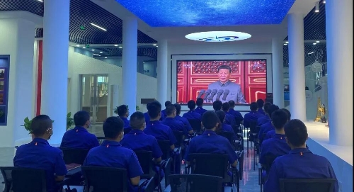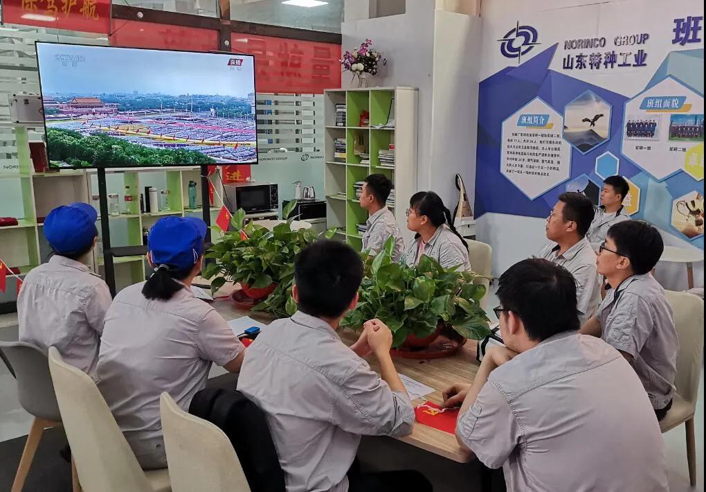 集團公司總經理、黨組副書記劉大山,黨組副書記周艦,黨組成員、總會計師張華,紀檢監察組組長、黨組成員陳學釧,黨組成員、副總經理鄒文超,黨組成員、副總經理植玉林帶領總部全體職工觀看慶祝大會,各單位組織機關干部、科研人員、車間工人等通過集中收看、電視、電腦、手機網絡等方式觀看慶祝大會。