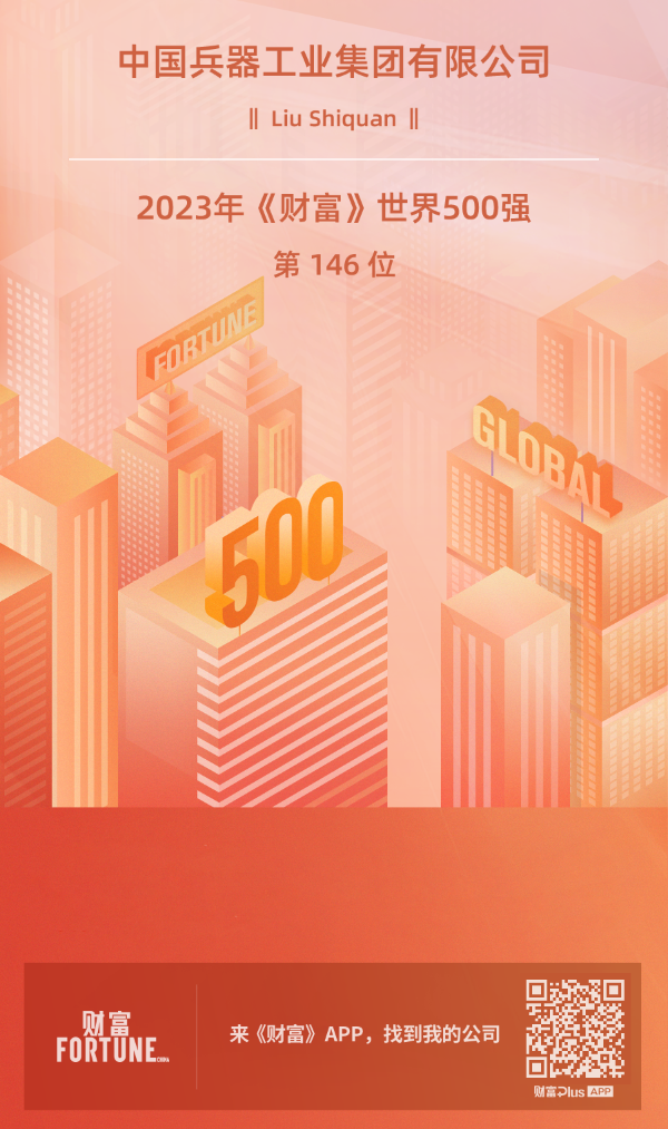 8月2日(ri),2023年(nian)《財富》世界500強排行榜正式發(fa)布,中國兵器工業(ye)集(ji)團(tuan)有限公(gong)司(si)以826.89億美元的營業(ye)收入排名第(di)(di)146位(wei),連續第(di)(di)14年(nian)入榜。