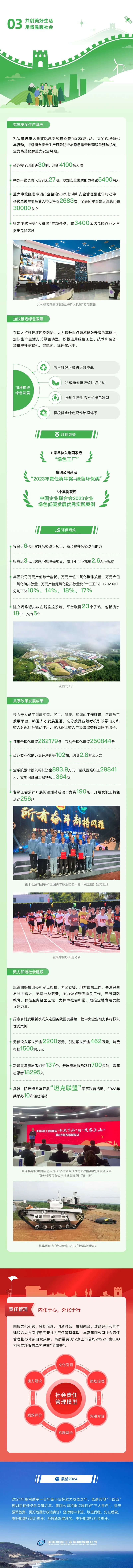 |   近日,兵器工業集(ji)團向公眾正式(shi)發(fa)(fa)布(bu)《中國兵器工業集(ji)團有限公司(si)(si)2023年(nian)社會(hui)(hui)責任報告》,《報告》全面總結2023年(nian)集(ji)團公司(si)(si)在(zai)履行強(qiang)軍首責、建(jian)設現代(dai)化產業體系、實施創新(xin)驅動發(fa)(fa)展(zhan)戰(zhan)(zhan)略、人才(cai)強(qiang)企(qi)戰(zhan)(zhan)略、綠色(se)發(fa)(fa)展(zhan)以及(ji)助力鄉(xiang)村振興等方(fang)面的(de)(de)履責成(cheng)效,充分展(zhan)示集(ji)團公司(si)(si)勇擔央(yang)企(qi)政治責任、經濟責任和社會(hui)(hui)責任的(de)(de)良好企(qi)業形象。經中國企(qi)業社會(hui)(hui)責任報告評級(ji)專家委(wei)員(yuan)會(hui)(hui)評定,《報告》連續第五年(nian)獲(huo)得(de)“五星(xing)佳”最高評級(ji),成(cheng)為(wei)軍工行業唯一獲(huo)此殊榮的(de)(de)中央(yang)企(qi)業。