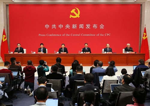 10月(yue)30日,中(zhong)(zhong)共中(zhong)(zhong)央在(zai)北(bei)京(jing)舉(ju)行(xing)新(xin)(xin)聞(wen)發布會(hui),介紹(shao)黨(dang)的(de)十九(jiu)屆五中(zhong)(zhong)全會(hui)精(jing)神,并(bing)答記者(zhe)問。 新(xin)(xin)華社記者(zhe) 李(li)鑫 攝 10月(yue)30日,中(zhong)(zhong)共中(zhong)(zhong)央在(zai)北(bei)京(jing)舉(ju)行(xing)新(xin)(xin)聞(wen)發布會(hui),介紹(shao)黨(dang)的(de)十九(jiu)屆五中(zhong)(zhong)全會(hui)...